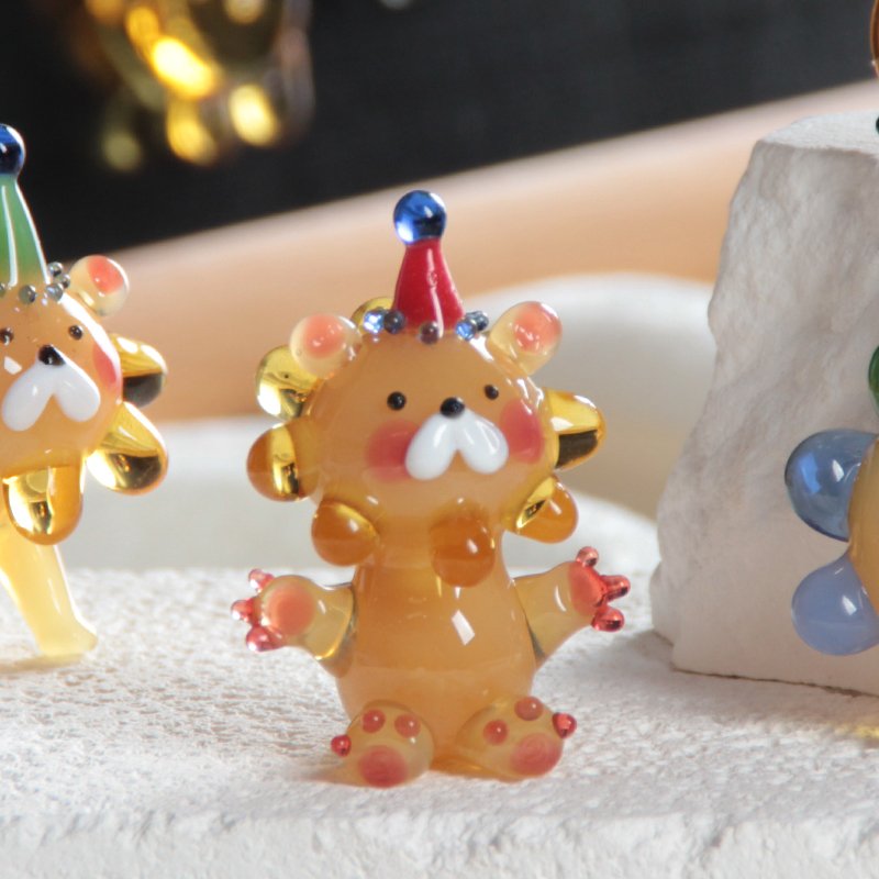 This adorable seated birthday lion is full of charm and craftsmanship. Made with a higher-grade glass, it features delightful details including a colorful party hat, rosy cheeks, and finely shaped paws. Whether you’re a collector or simply looking for a joyful gift, this piece brings a cheerful spirit worth celebrating.