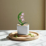 This delicate piece features three bell-shaped blossoms arranged along a gently curved stem — one of our most elegant floral designs. The flowers hang horizontally like tiny chimes, creating a graceful, charming silhouette that captures the quiet beauty of the lily of the valley.