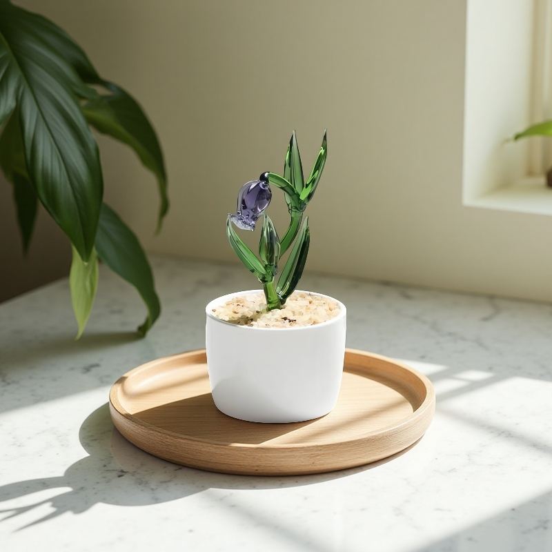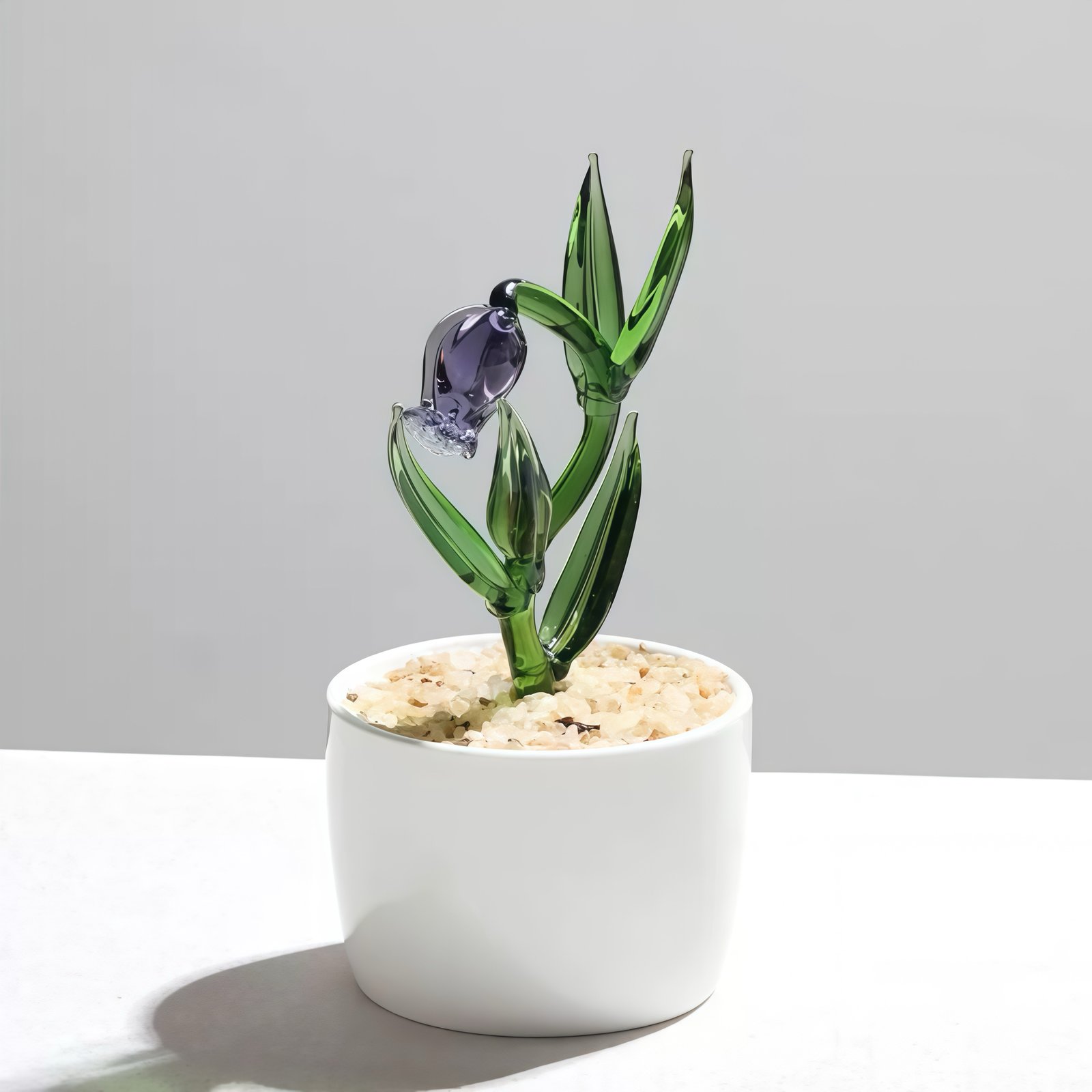 This single-stem lily of the valley features an elegant S-shaped curve in the stem, with an upward-reaching leaf that gives the design a bold, almost defiant silhouette — like a silent assassin in a fantasy world. Each curve is shaped by hand, so the bend of the stem may vary slightly from piece to piece, adding to its unique character and presence.