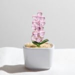 Bring a touch of spring into your space with this handcrafted glass hyacinth. Each piece is carefully made by hand, with slight variations in size that make every flower truly unique.